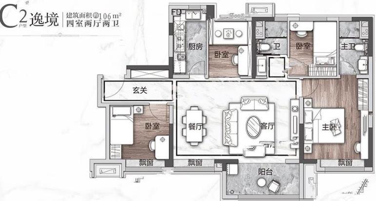 • 户型名称:4室2厅2卫115平米