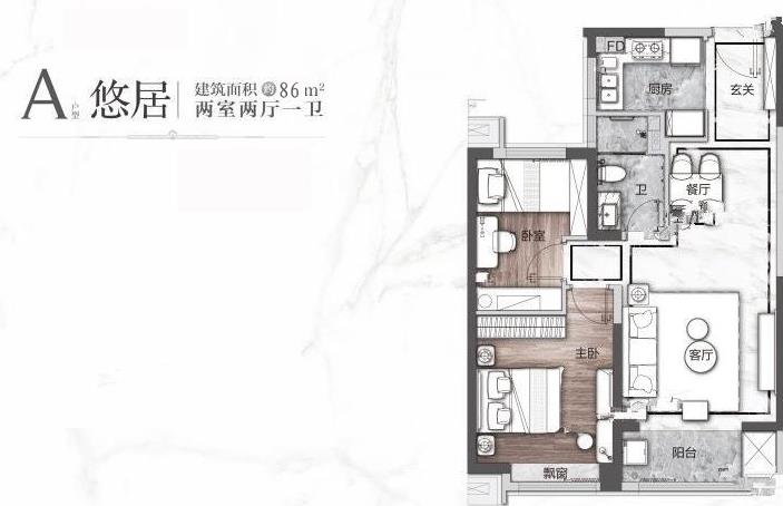 • 户型名称:2室2厅1厨1卫86平