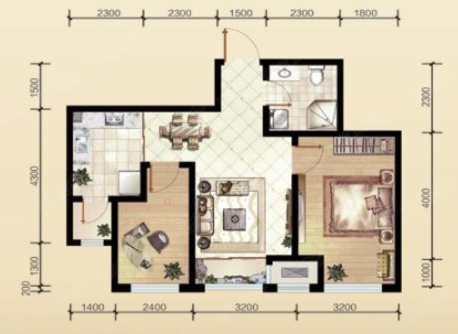• 户型名称:2室2厅1卫-81.2㎡