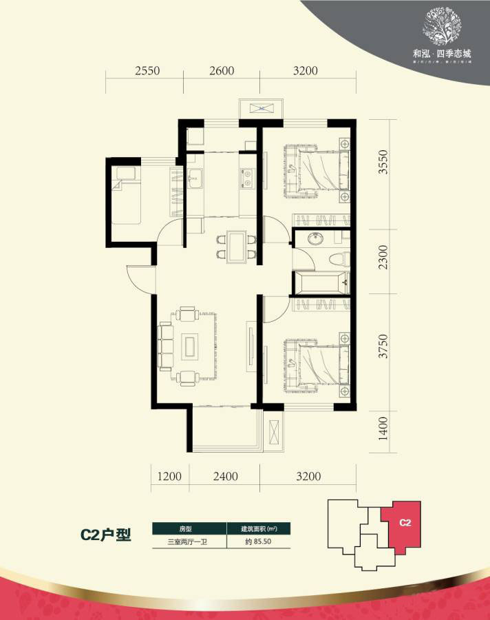 和泓四季公馆3室2厅1厨1卫 总价待定
