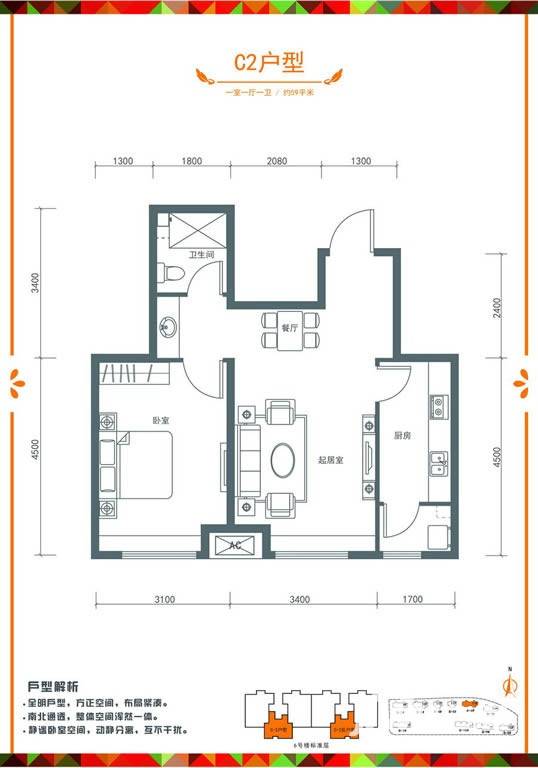 和泓四季公馆1室2厅1厨1卫 总价待定