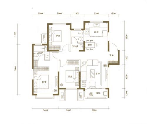 • 户型名称:3室2厅2卫1厨, 117.00平米