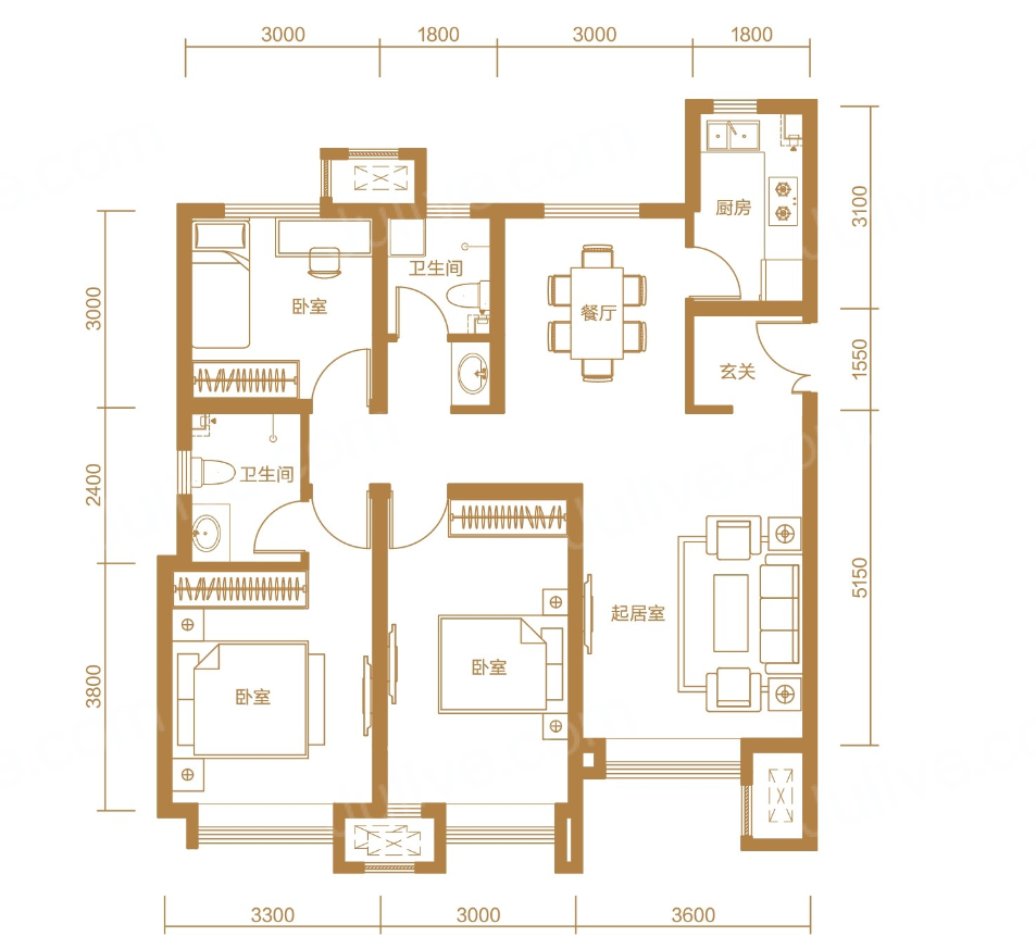 户型方正,无浪费面积