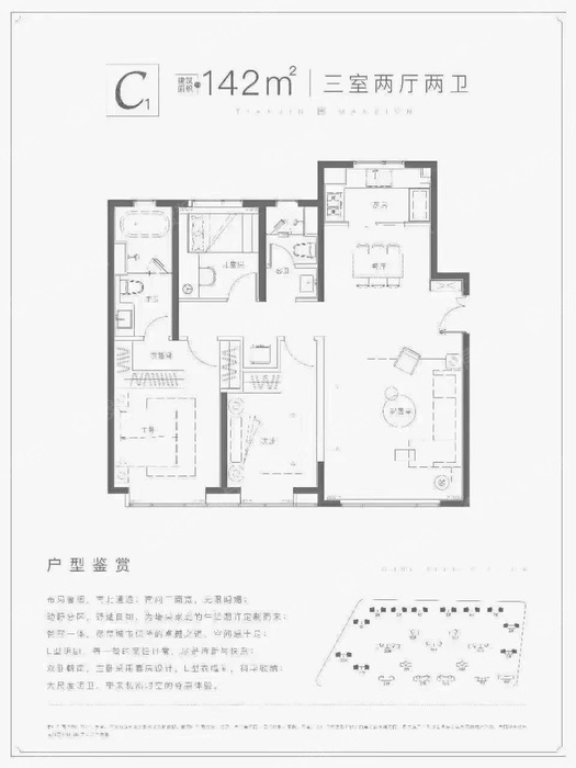 • 户型名称:3室2厅2卫-142.0㎡