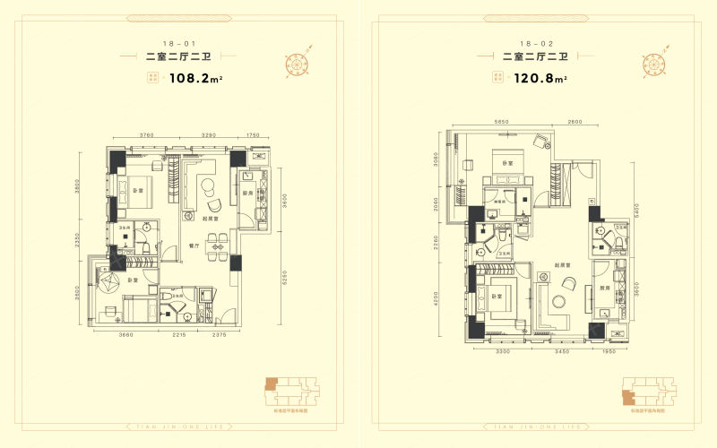 • 户型名称:2室2厅2卫1厨108平