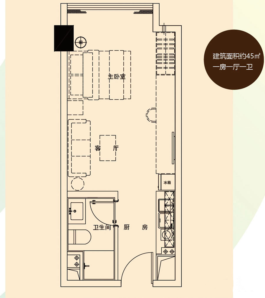 • 户型名称:1室1厅1卫
